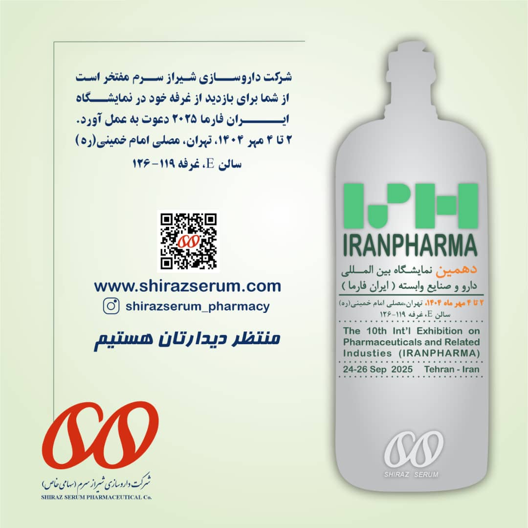 حضور شرکت شیراز سرم در دهمین نمایشگاه بین المللی ایرانفارما ۲ تا ۴ مهرماه ۱۴۰۴ تهران، مصلای امام خم ...